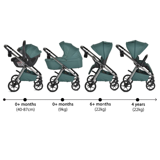 Passeggino Moni Bingo 360 Fronte Mamma e Fronte Strada con Coprigambe e Borsa Coordinata Marine Green 0/22kg