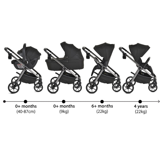 Passeggino Moni Bingo 360 Fronte Mamma e Fronte Strada con Coprigambe e Borsa Coordinata Nero 0/22kg